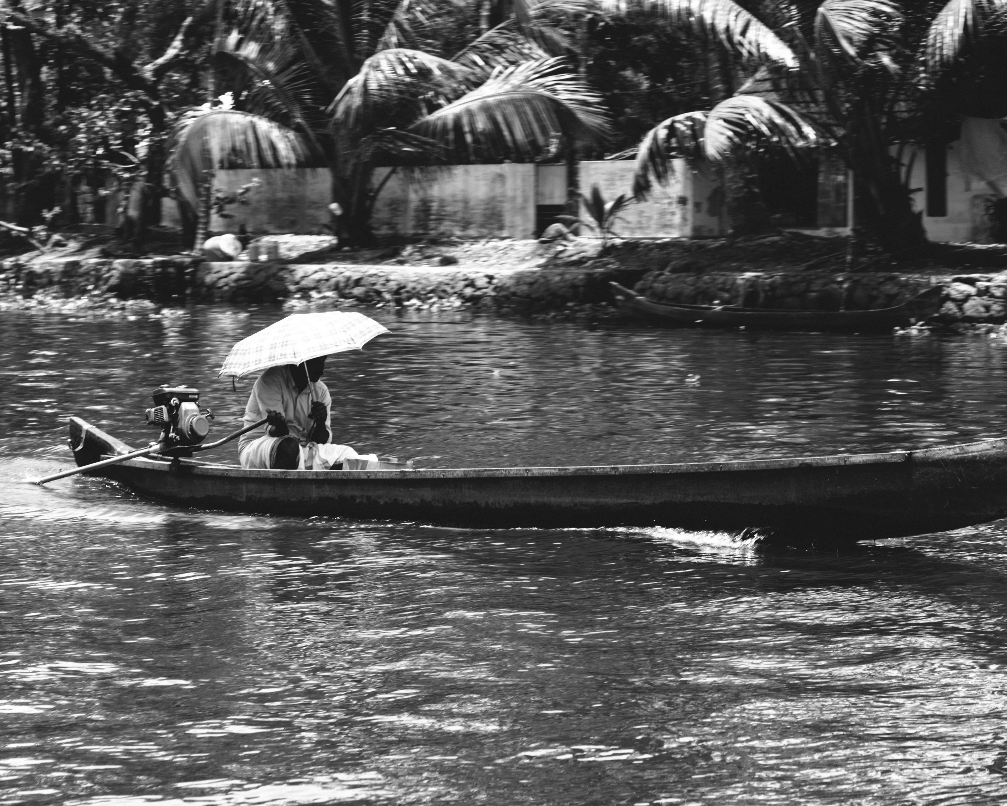 In Kerala, the backwaters and traditional houseboats are set against a backdrop of lush greenery.